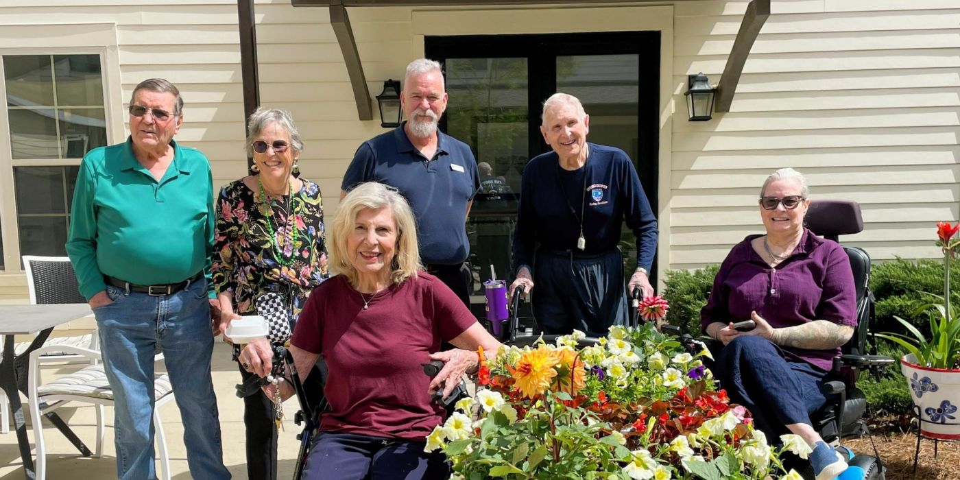 The project has reached beyond the independent living areas. Jim and Judy have worked to bring plantings into the assisted living courtyard as well, helping spread the joy of the garden to even more residents. Some assisted living residents have become especially invested, including one 92-year-old gentleman named Tommy who came along on a flower-shopping trip simply because he loves the garden so much.
