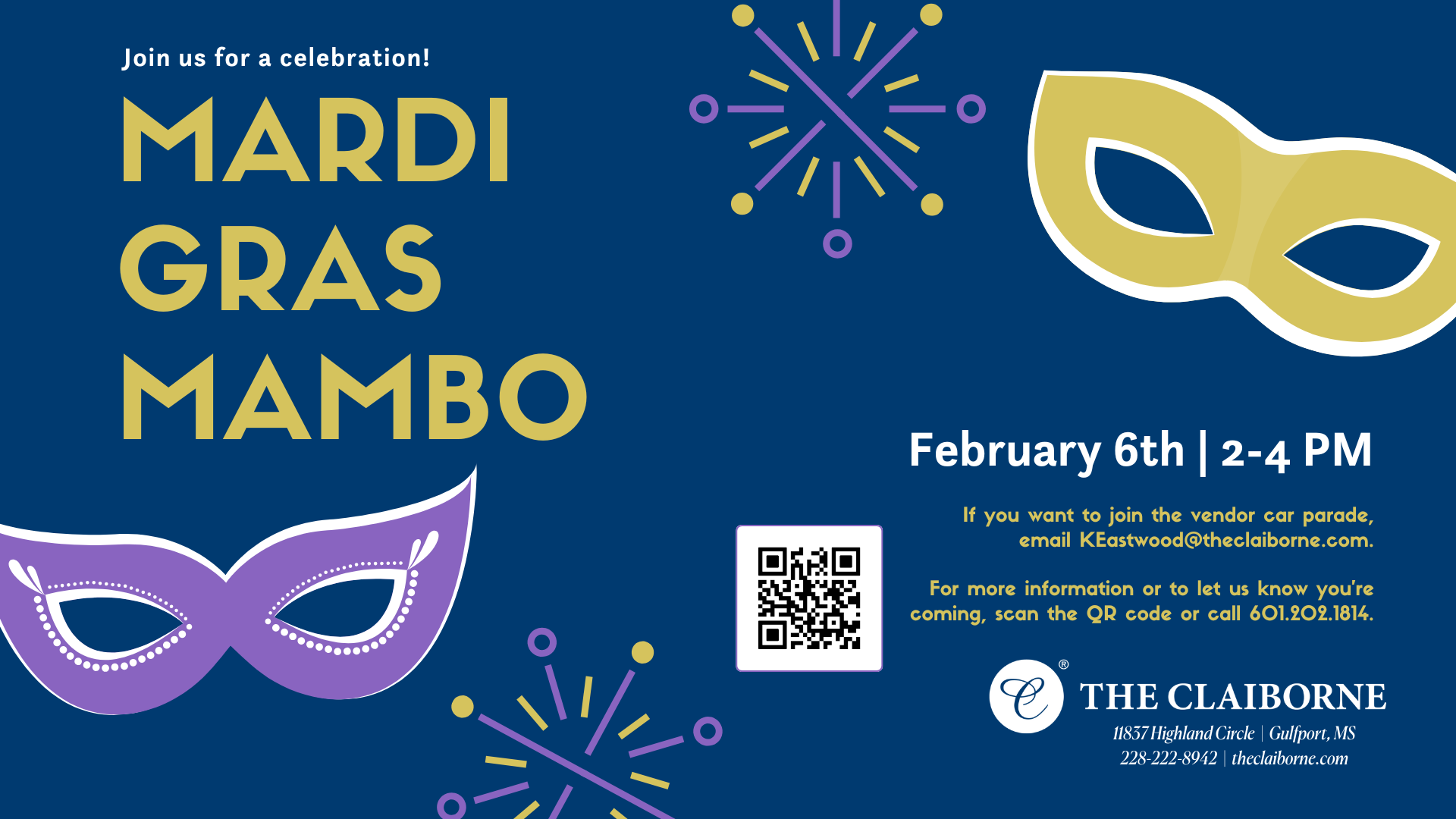 The Claiborne at Gulfport Highlands 11837 Highland Circle, Gulfport, MS, United StatesLocal businesses and community organizations will march through our breezeway in a festive parade, marking the Mardi Gras Carnival celebration. A live DJ will set the mood with upbeat carnival […]