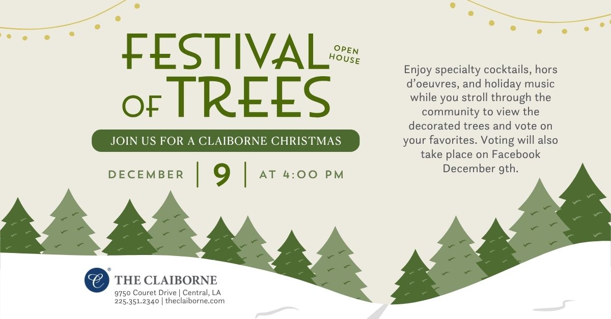 The Claiborne at Shoe Creek 9750 Couret Drive, CentralJoin us for a Claiborne Christmas where local businesses and community groups will display hand-decorated trees throughout the community. Enjoy holiday-inspired refreshments while you stroll through the community to view […]